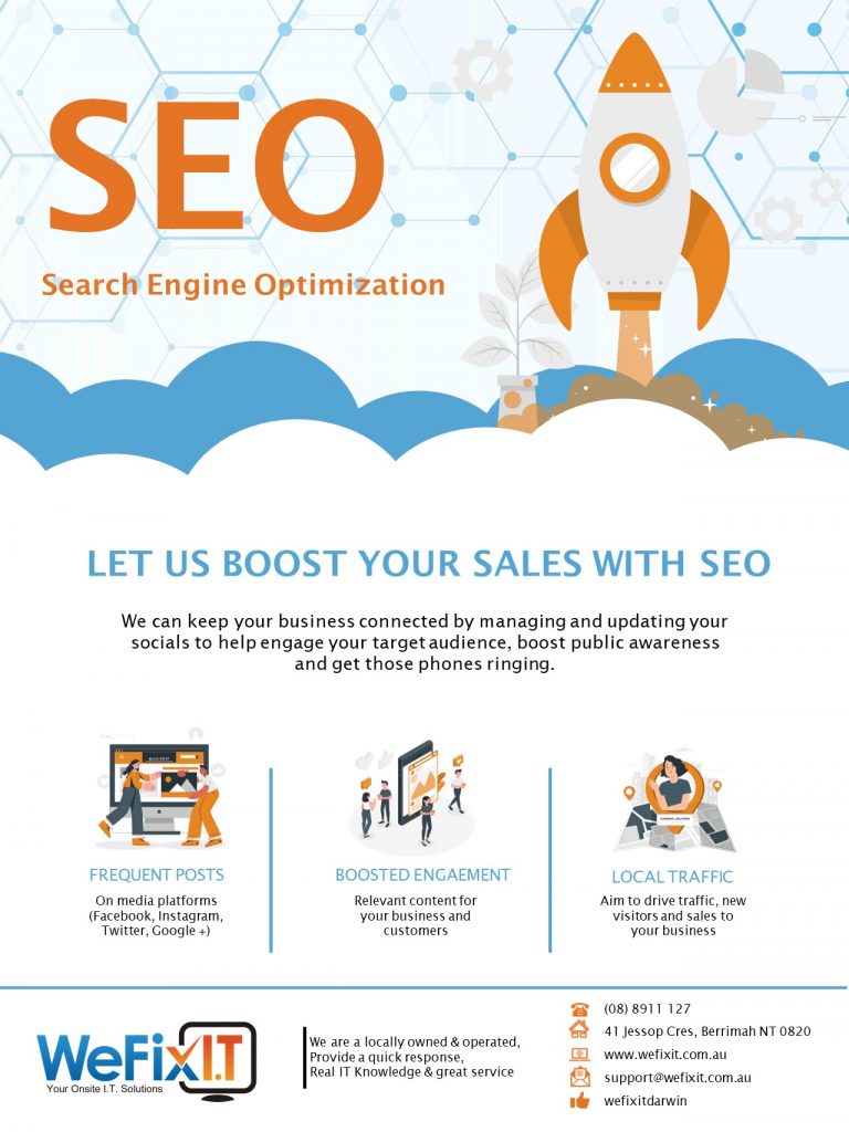 Search Engine Optimization (SEO) is key to keep your business’ website and socials at the top of Google Search. So, whether you need help getting started or want our team of specialists managing your digital platforms for you, the web team at We Fix IT will happily help you get noticed online!